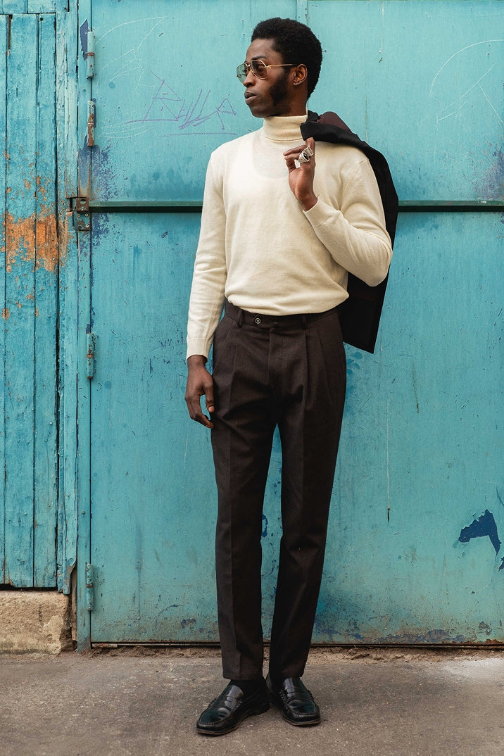 • Pantalon double pinces flanelle marron