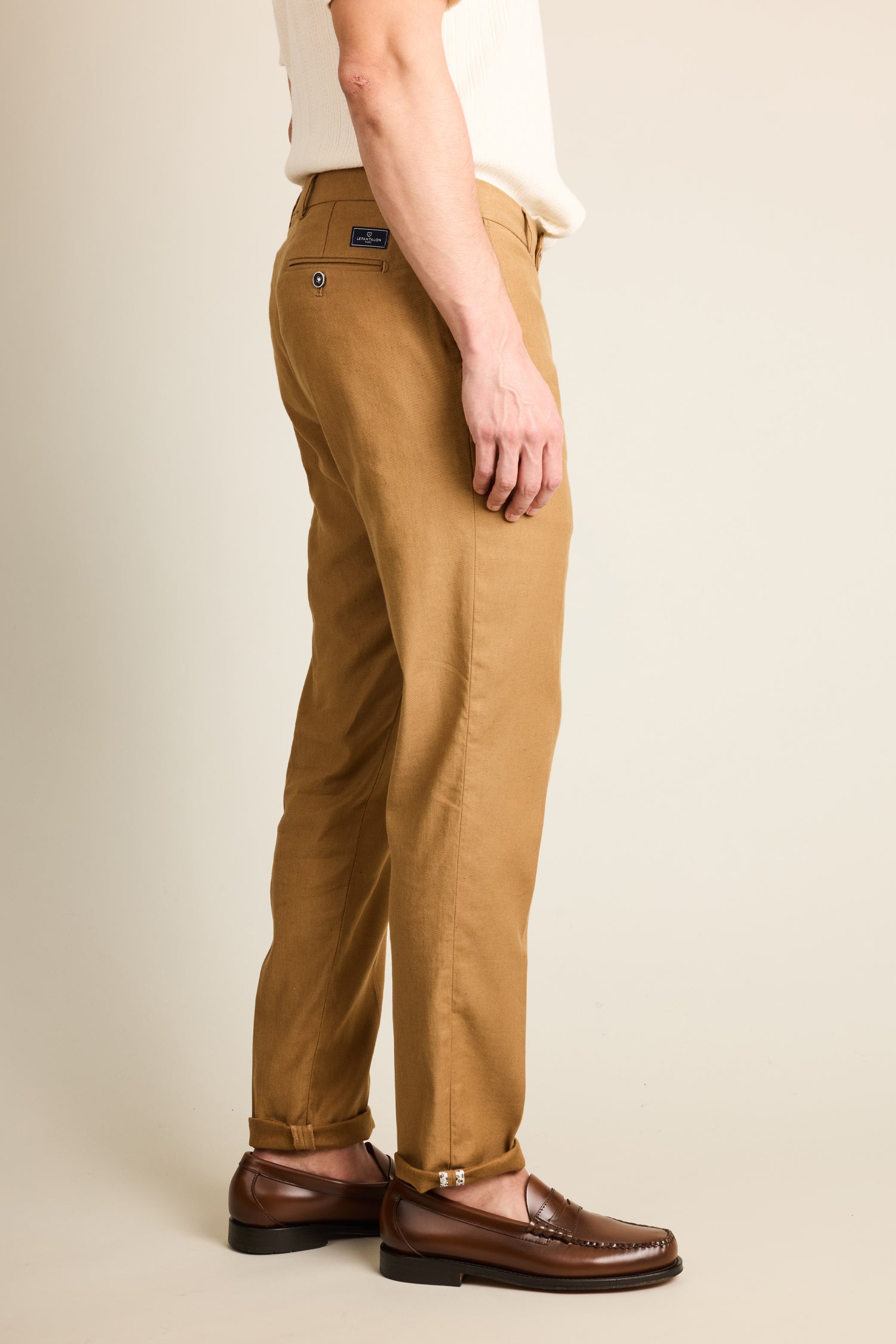 Chino coton-lin caramel